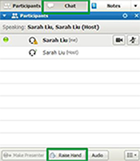Chats: 输入文字沟通。下方的 Send to可以选择发送给个人或者全部参与者。