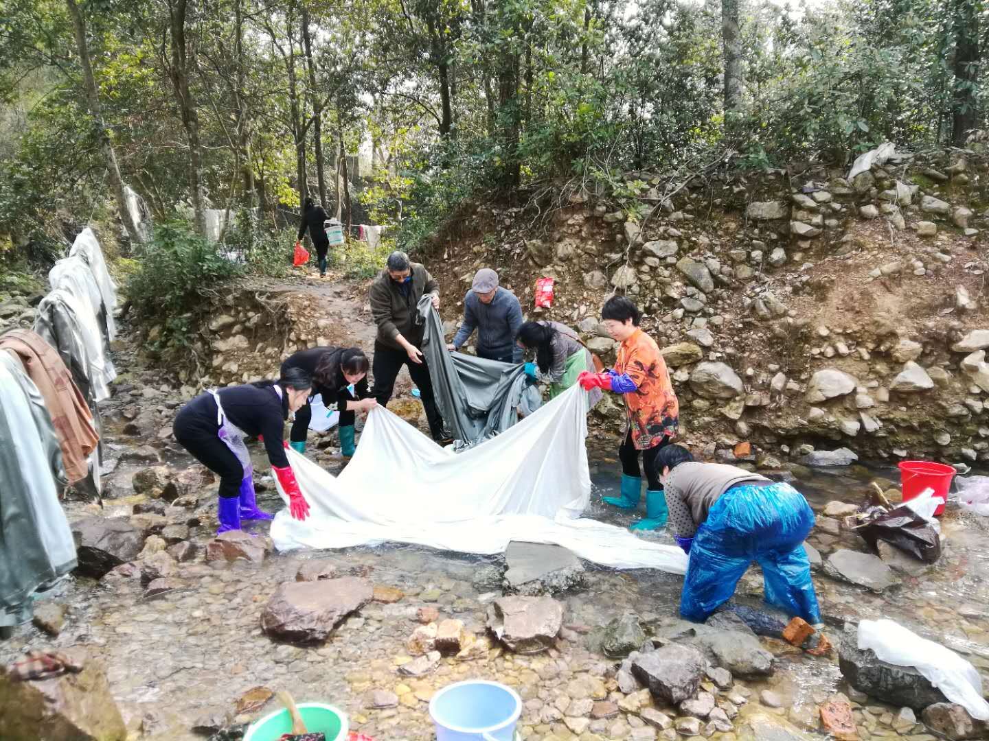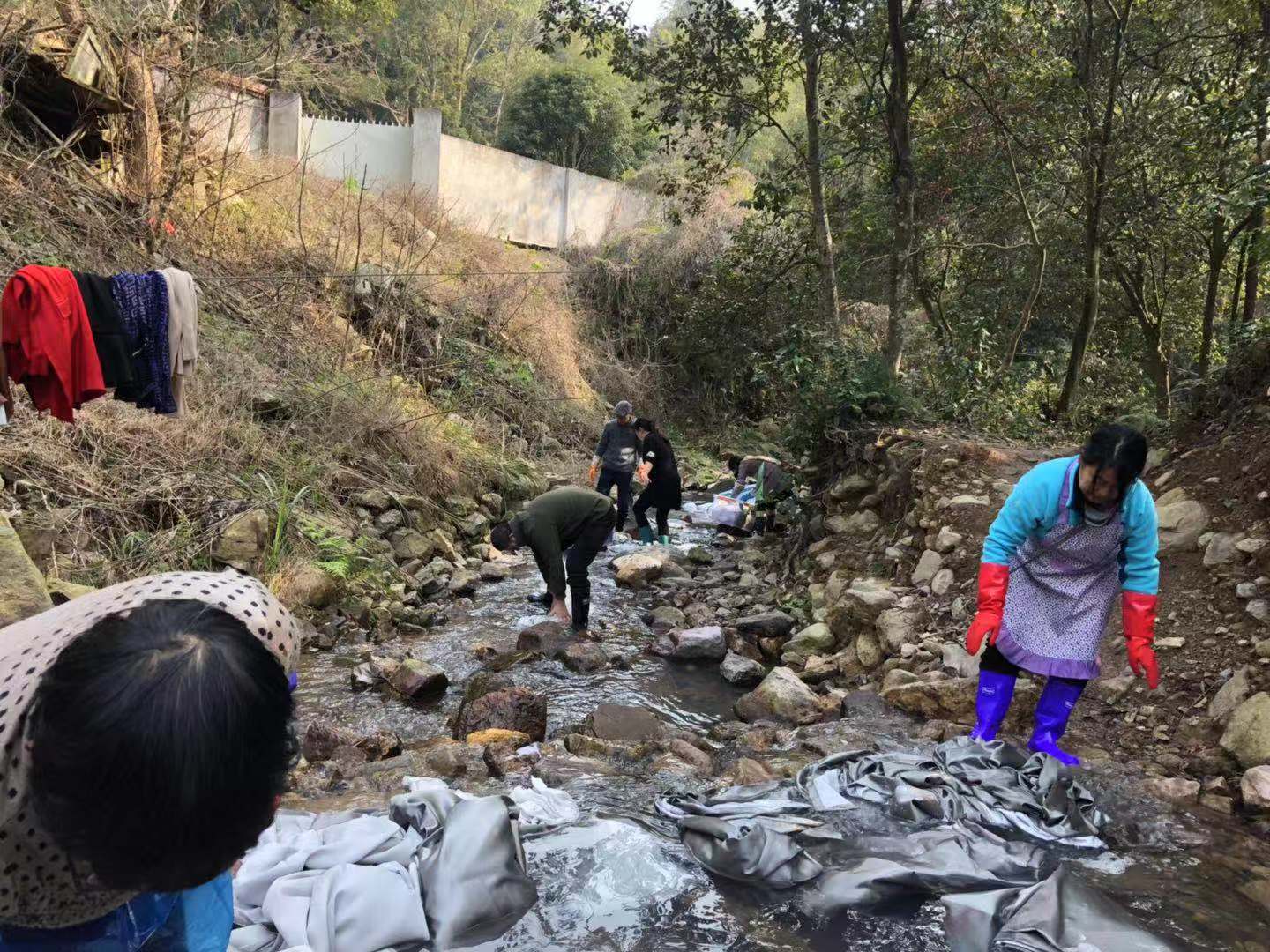 女神们积极响应,男神们也热情参加,一大早,大家就自带劳动工具和装备,一路欢笑到达三峰小溪边。河水清澈、冰凉,但大家热情高涨,开始了热火朝天的劳动,一条条窗帘在大家勤劳的双手中变得洁净。