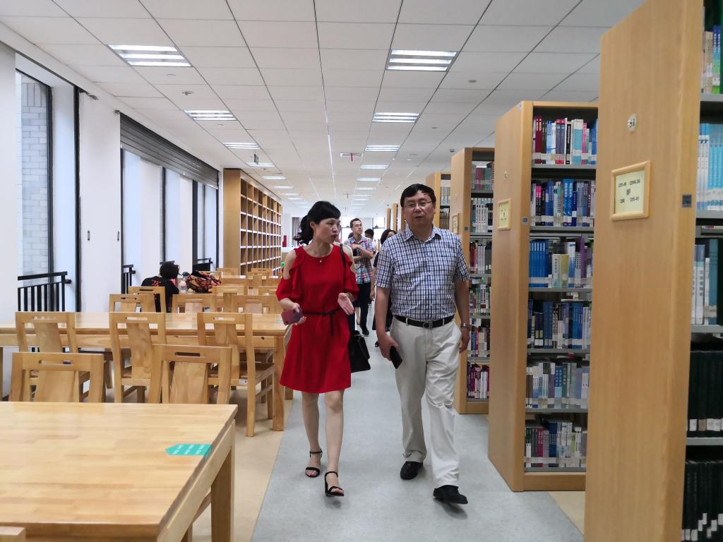 图书馆馆长吴世永、副馆长杨凌云及各部门负责人热情接待了来访的图书馆同仁,介绍了我馆的建设发展,并陪同参观了二楼大厅主题展览、台州学院人著述文库、台州地方文库、影音阅览室及各楼层书库。在参观的过程中,齐静芬主任一行对我校图书馆的建设发展以及各种活动项目表示肯定与称赞。