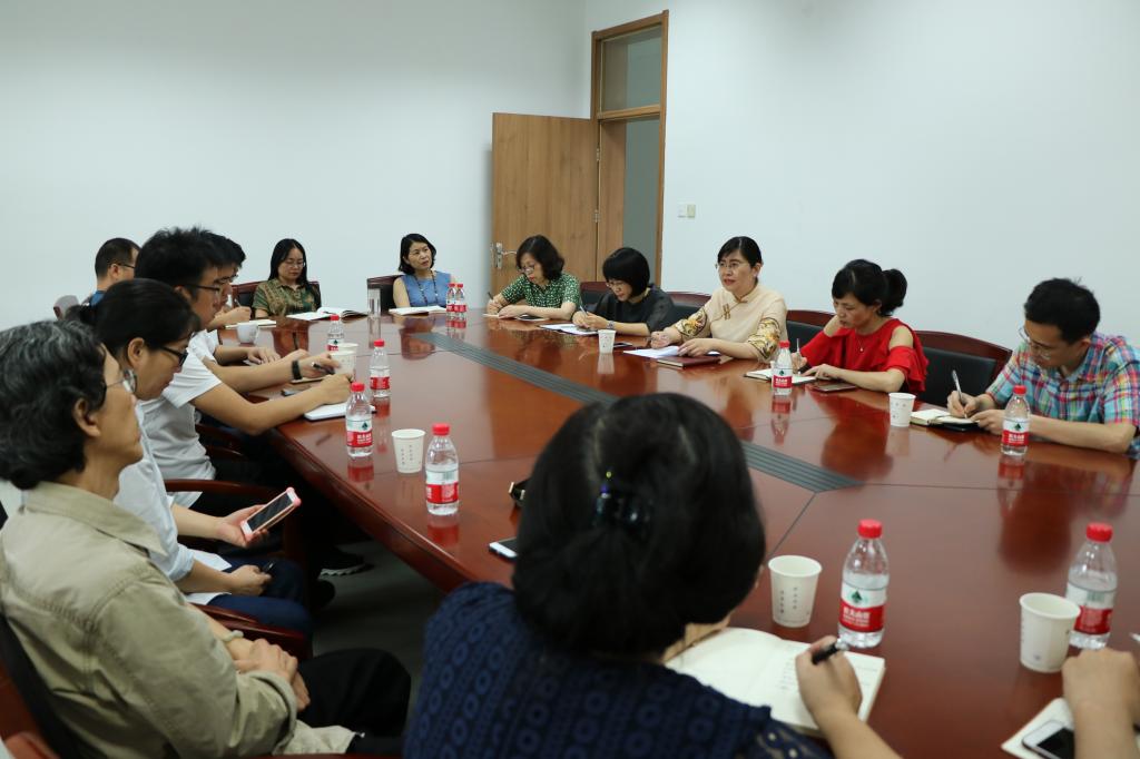 参观过后,双方在六楼会议室进行了座谈交流。杨凌云副馆长向来访的图书馆同仁介绍了图书馆的馆舍布局、馆藏资源、管理与服务模式、新馆开放以来举办的各种活动等方面的基本情况,分享了经验做法。座谈会上,双方还就图书馆现有的运营模式及未来文化活动建设等方面展开了深入交流和探讨,相互介绍了好的经验和做法,进一步加强了两馆之间的交流。