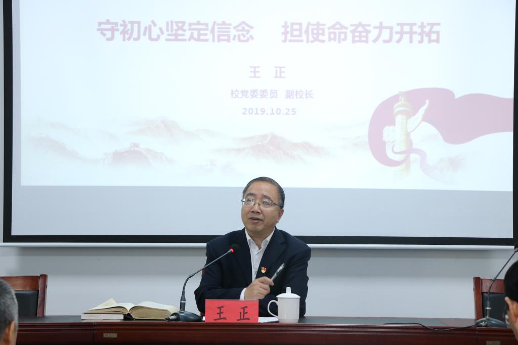 为持续深入推进“不忘初心、牢记使命”主题教育,10月25日上午,副校长王正以“守初心坚定信念,担使命奋力开拓”为主题,为图书信息党总支全体党员上了一堂深刻而生动的党课。党课在临海校区教学楼4204报告厅举行,图书信息党总支书记杨跃民主持党课。