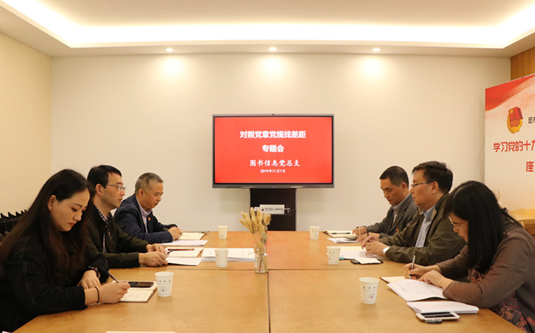 图书信息党总支理论中心组成员在深入学习习近平总书记关于“不忘初心、牢记使命”重要论述的基础上,对照《中国共产党章程》、《关于新形势下党内政治生活的若干准则》、《中国共产党纪律处分条例》、《中国共产党问责条例学习手册》等内容,重点围绕“18个是否”的检视要求,逐一进行了发言,以正视问题的自觉和刀刃向内的勇气,进行自我检查,把自己摆进去、把职责摆进去、把工作摆进去,全面找差距查问题,明确了整改提高的方向和措施,增强了党的意识、党员意识、纪律意识,提升了政治境界、思想境界、道德境界。