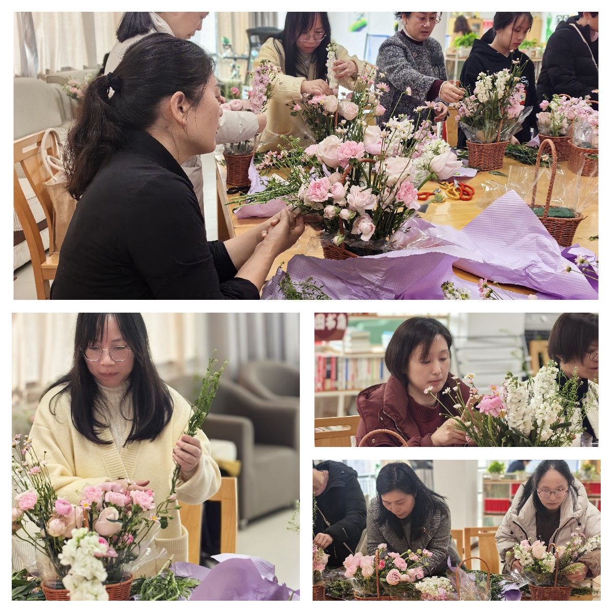 活动现场,温馨雅致。每位女教职工充分发挥想象力和创造力,精心修剪、巧妙构思、用心搭配,将普通的花材变成了一件件独具匠心、错落有致的花艺作品。活动现场欢声笑语不断,大家互相交流心得、分享创意,在花香中感受艺术之美,在创作中体会生活之趣。